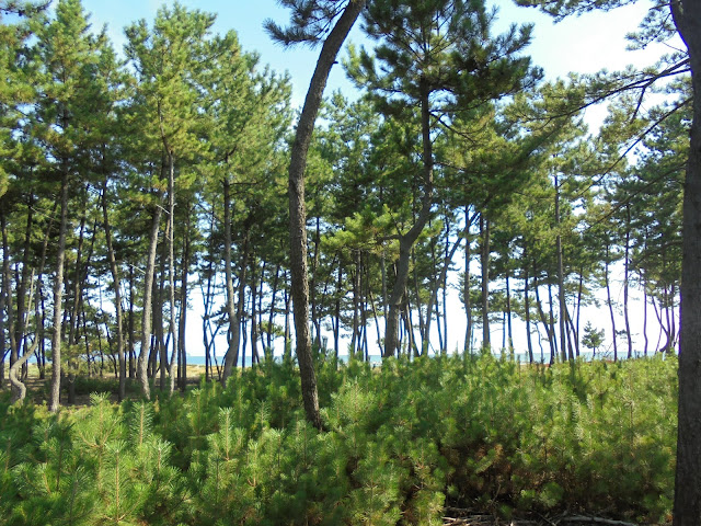 松林を通り泊地を回り防波堤の上を歩き砂浜に出て突堤まで行きました