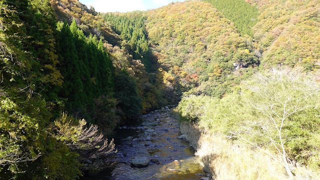 日の当たるJR生山駅辺りを巡り石霞渓に向かいました